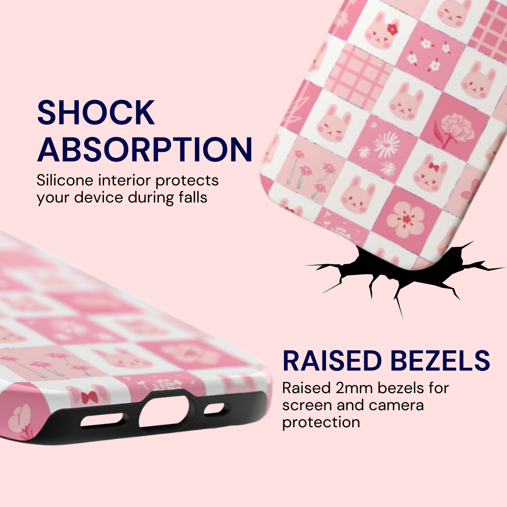 Our cases are made to handle real life. They offer up to 6 feet of drop protectionand help guard against everyday drops, scratches, and bumps, all while keeping your phone sleek and cute. Think practical protection without the chunky, bulky feel.